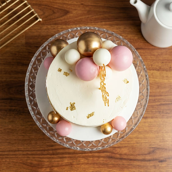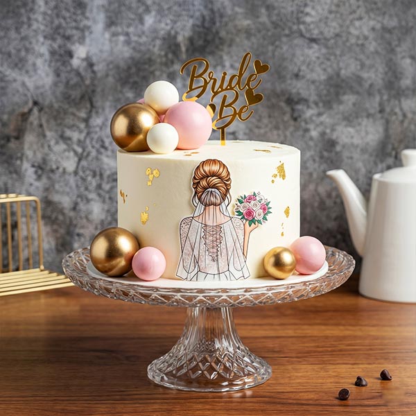 This bridal shower bride to be cake is crafted to celebrate the bride-to-be with elegance, sweetness, and to make her special day memorable. The cake is decorated with a soft white base, delicate gold accents, pastel decorative balls, and a stylish “Bride To Be” topper.