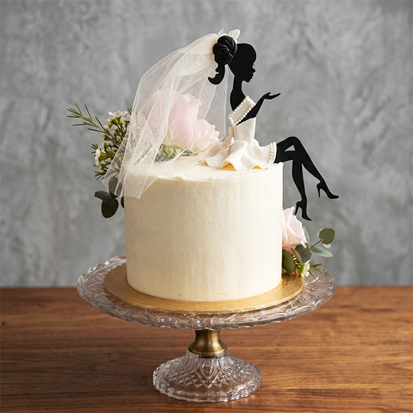 This bride to be silhouette floral cake is crafted to make your pre-wedding party truly memorable. The beautiful cake is decorated with a bride silhouette topper, pink flowers, and soft pastel floral decorations. Book your order today and enjoy same-day delivery across India.