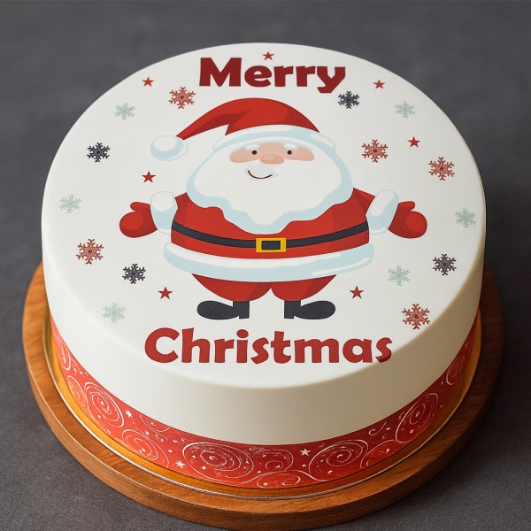 This beautiful Christmas Santa Photo Cake is designed with a cute Santa Claus design with the message “Merry Christmas” on top. It’s a fun and festive cake, perfect for Christmas parties or family celebrations. The colorful design adds holiday cheer, making it a perfect cake for every celebration. Freshly baked and made with 100% eggless ingredients, this cake is available in various sizes and flavors.