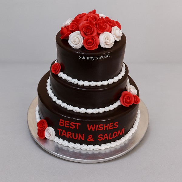 Planning to celebrate your special day with an elegant cake? Get this 3 tier chocolate anniversary cake, designed to make the moment unforgettable. This rich chocolate cake is adorned with beautiful red and white roses. Made with premium quality ingredients and is available in various weight options. You can personalise this cake with message, name, photo, etc. A perfect cake for anniversaries, weddings, and engagements.