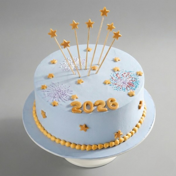 Kick-off 2026 with this elegant New Year cake. A celebration for New Year with our 100% eggless, freshly baked cake. This cake is made with love and is designed to show festive decorations and is available in various flavours and sizes. Perfect for ringing in the New Year with joy and deliciousness.